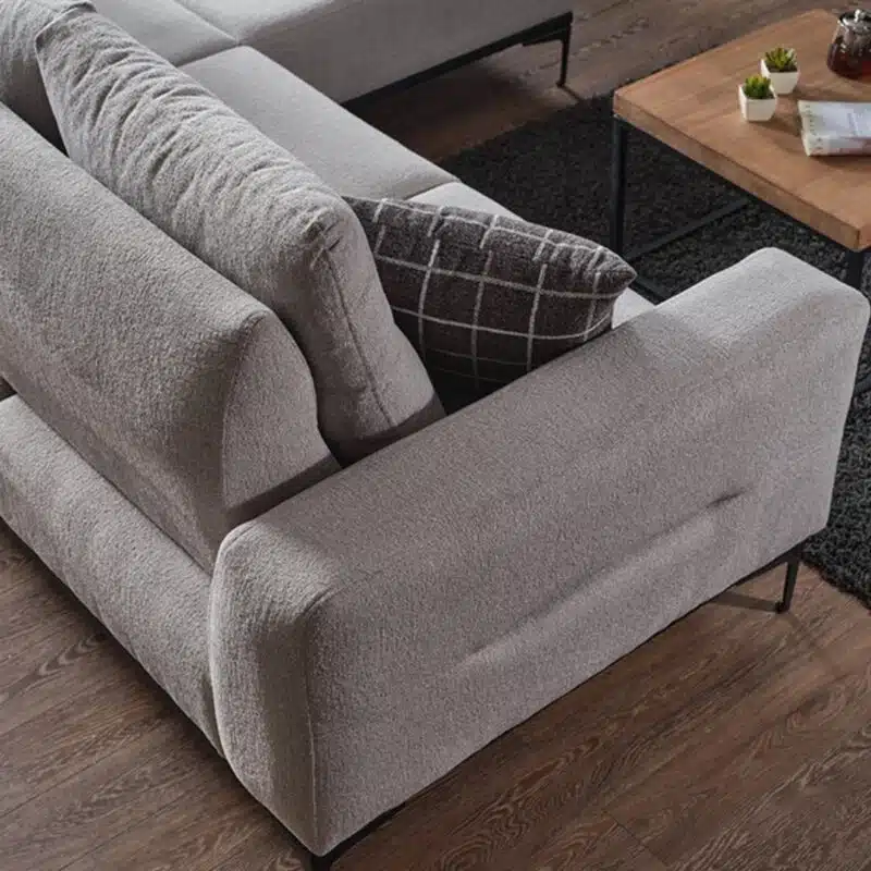 Das Beyoğlu Ecksofa Set überzeugt durch seine klaren Linien und das moderne, minimalistische Design. Diese ästhetische Schlichtheit ermöglicht es, das Sofa in eine Vielzahl von Wohnkonzepten zu integrieren – sei es in ein modernes Loft, eine gemütliche Stadtwohnung oder ein geräumiges Familienhaus. Die ausgewogene Form und die dezenten Farben des Sofas sorgen dafür, dass es stets harmonisch in die Umgebung passt, ohne aufdringlich zu wirken.